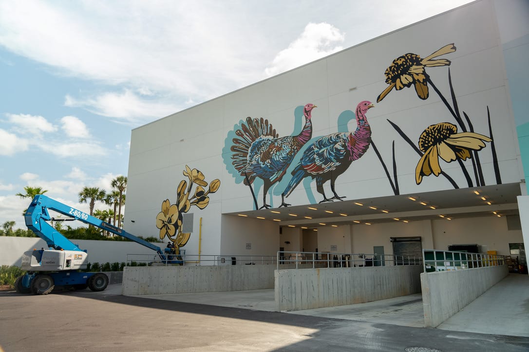 Alli K: Scale is what gets me excited—anything big! The side of a building, an airplane, a rooftop, a basketball court… no surface is off limits, which is why I love murals!
