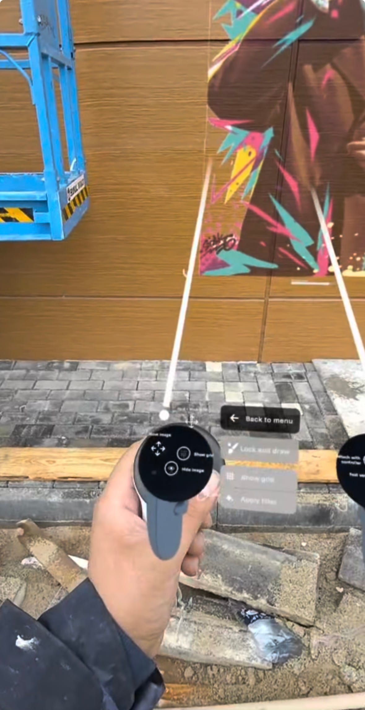 Stak: Before I start painting, I can give the client an amazing preview through the headset. I show them how the final artwork will look on the wall and how it appears from different angles in the space.