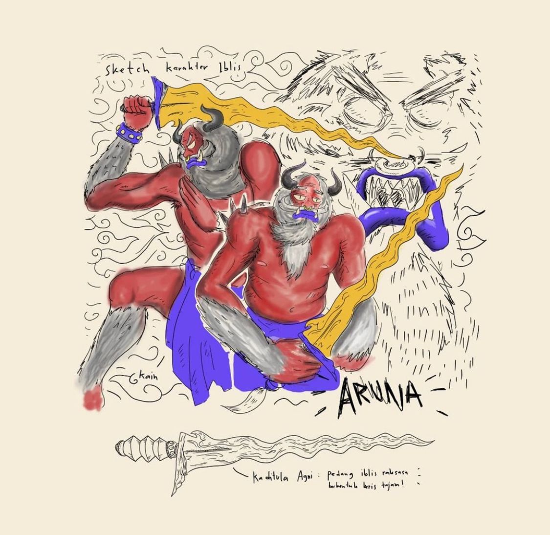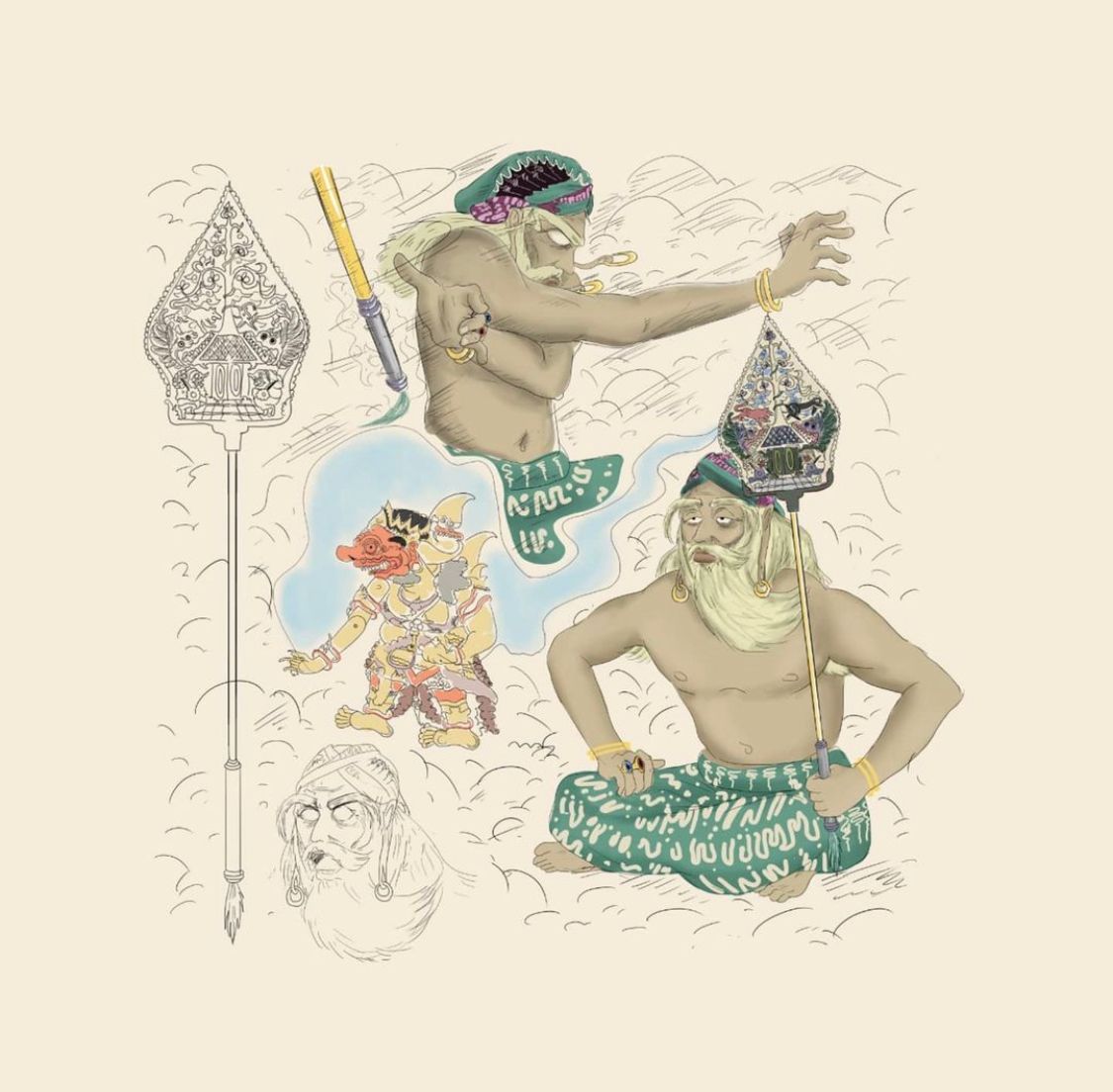 Of course! I am currently in the process of developing characters and stories. It is a comic, graphic novel that tells the adventures and misfortunes of the main character who wants to find the meaning of good and bad. The characters are visually inspired by Indonesian wayang.