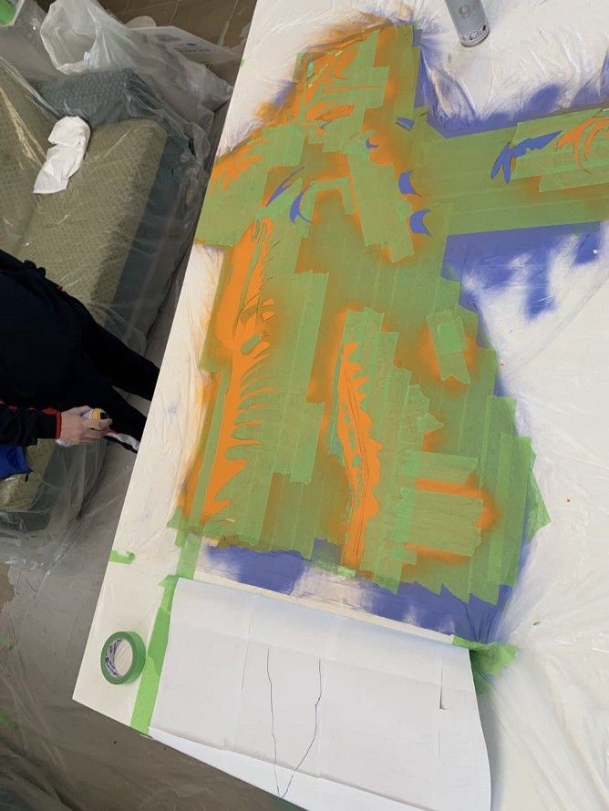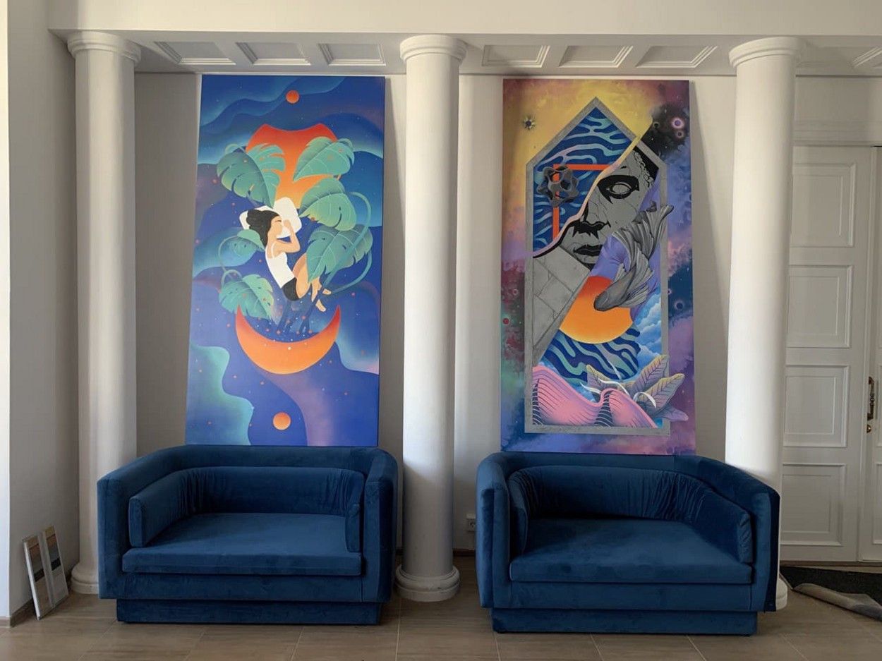One of my tasks was to create paintings in large enough sizes, which is something I’ve never done in my life. Several attempts to draw the image contours on the canvases on my own failed — so the SketchAR app came to me as a helper. On the whole, I managed to accomplish my purpose, though there were difficulties.