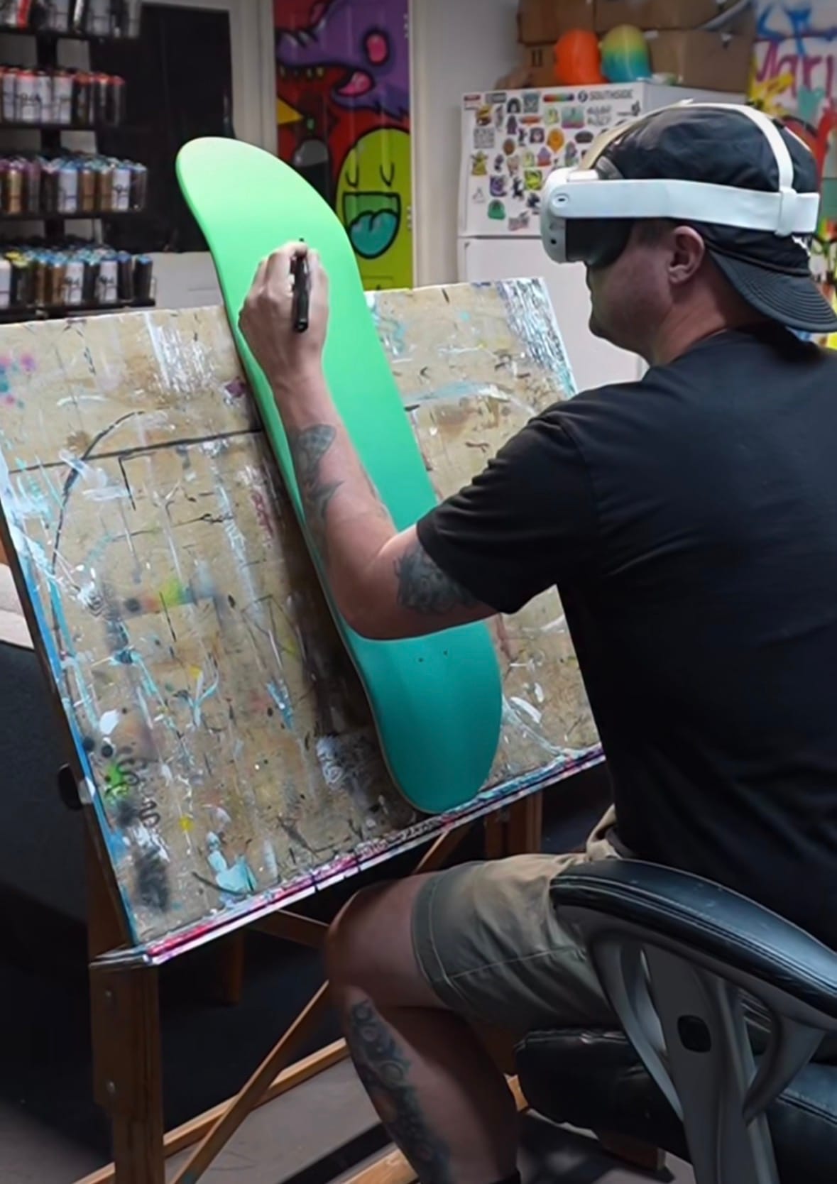 Nicky: A lot of people still think the headset is doing the painting for me. They see a piece of tech and assume it replaces skill. But these are my designs that I draw out, and it’s my years of practice that let me paint them the way I do. The VR isn’t the artist — it’s just a tool.