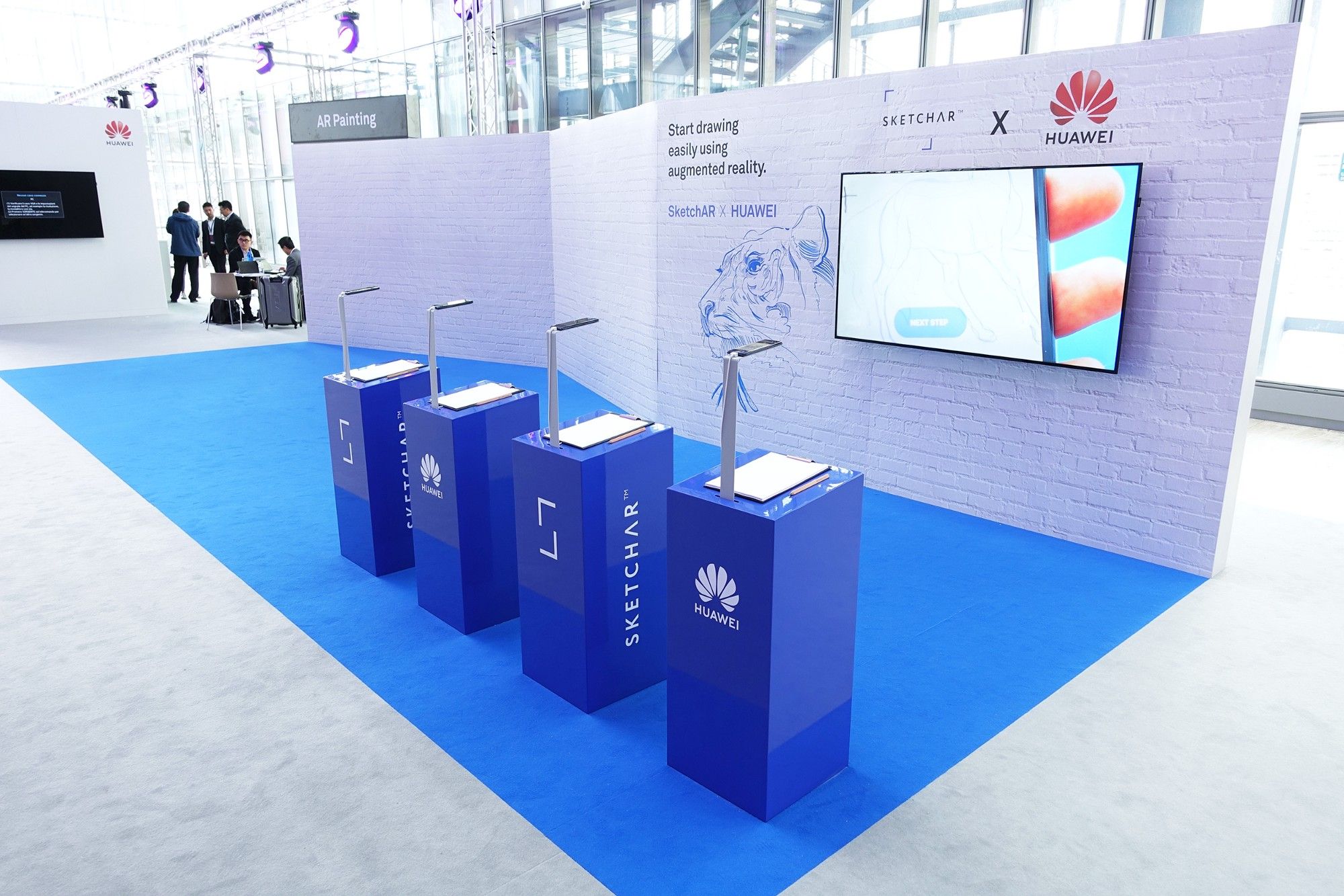 Every visitor can draw by taking part in a collaborative artwork on a wall at the SketchAR drawing area using SketchAR and Huawei Mate20Pro. Also, be able to try step-by-step drawing lessons on paper.