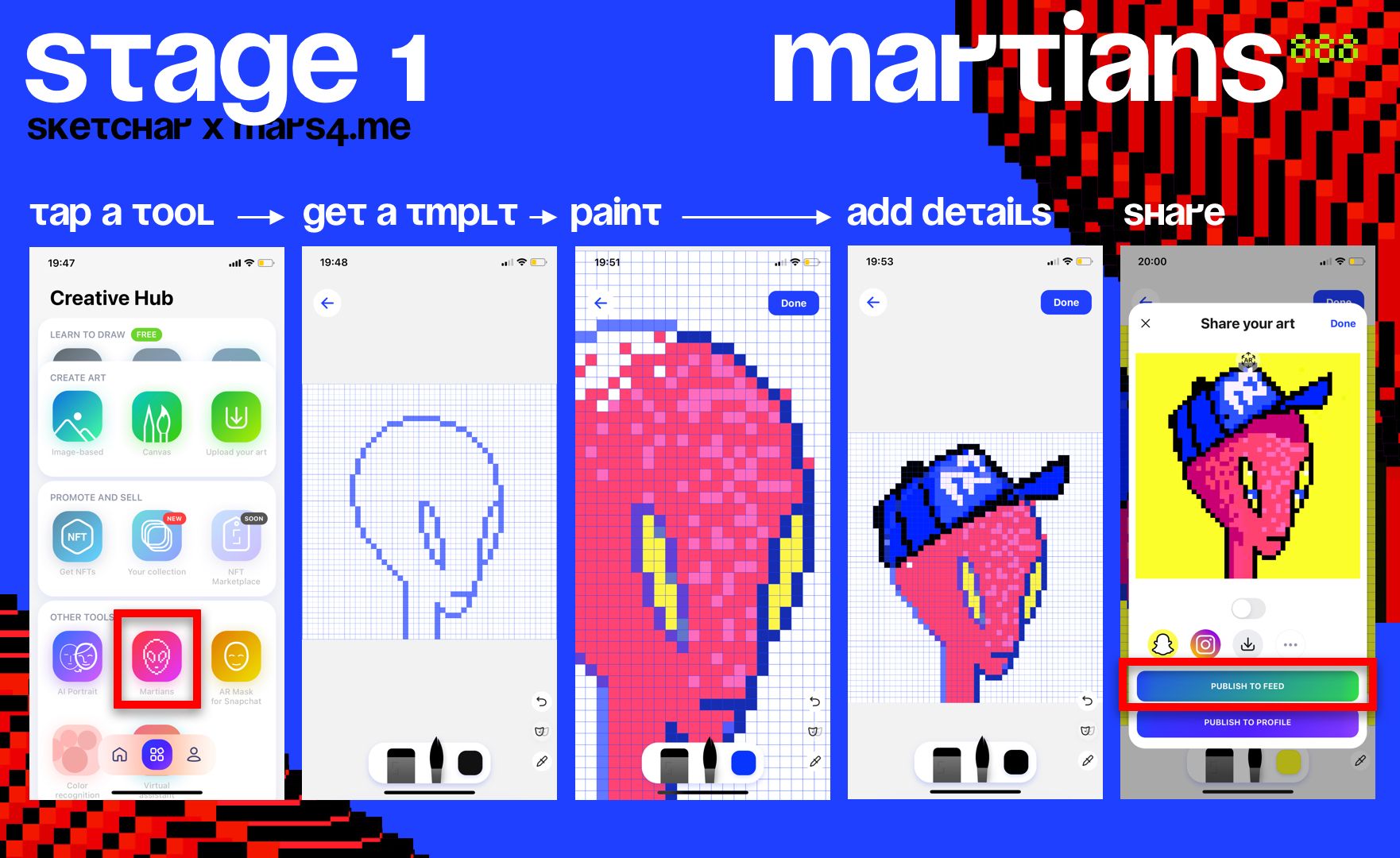 • Share the resulting image in the Martians888 collection on the in-app feed.