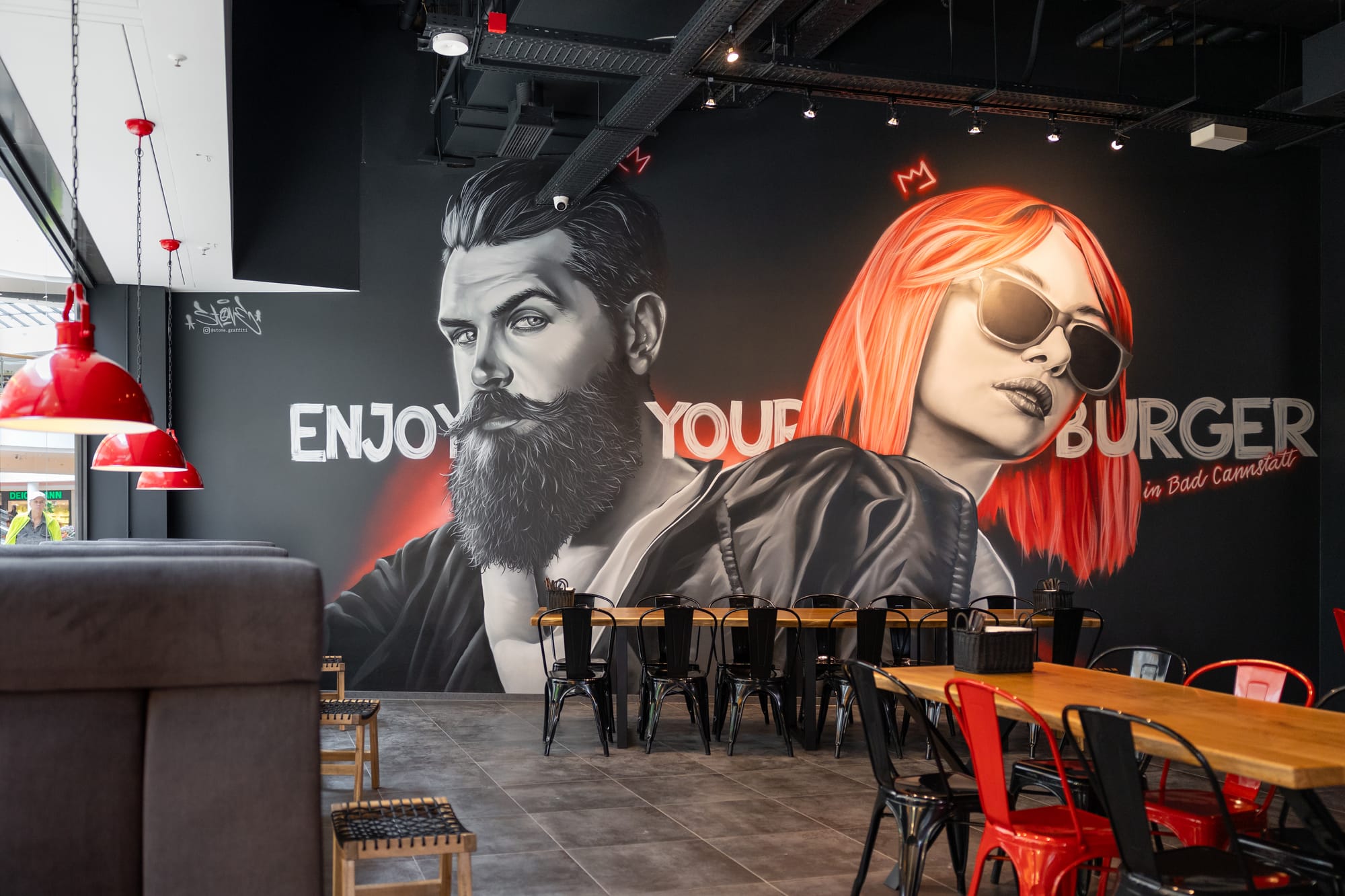 Stone, known professionally as Stone Graffiti, is a globally active graffiti artist from Laupheim near Ulm. Since 2008, he has transformed facades, interiors, canvases, and objects into striking, custom works of art. His reputation is built on impeccable craftsmanship, creativity, and reliability — and a rare ability to paint highly detailed realistic characters, while seamlessly blending them with graphic and abstract elements.