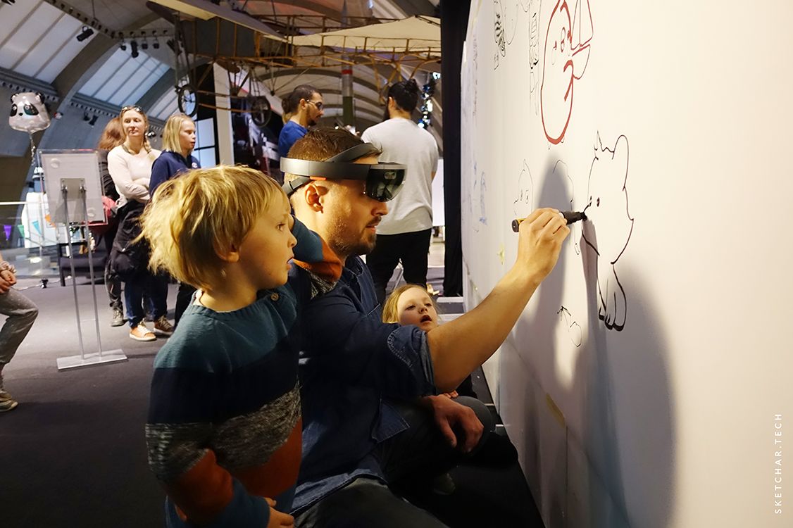 In the same year, we presented our booth at AWE in China, where anyone interested could draw on the wall using the Sketchar app on HoloLens. The audience was thrilled. Just check it out.