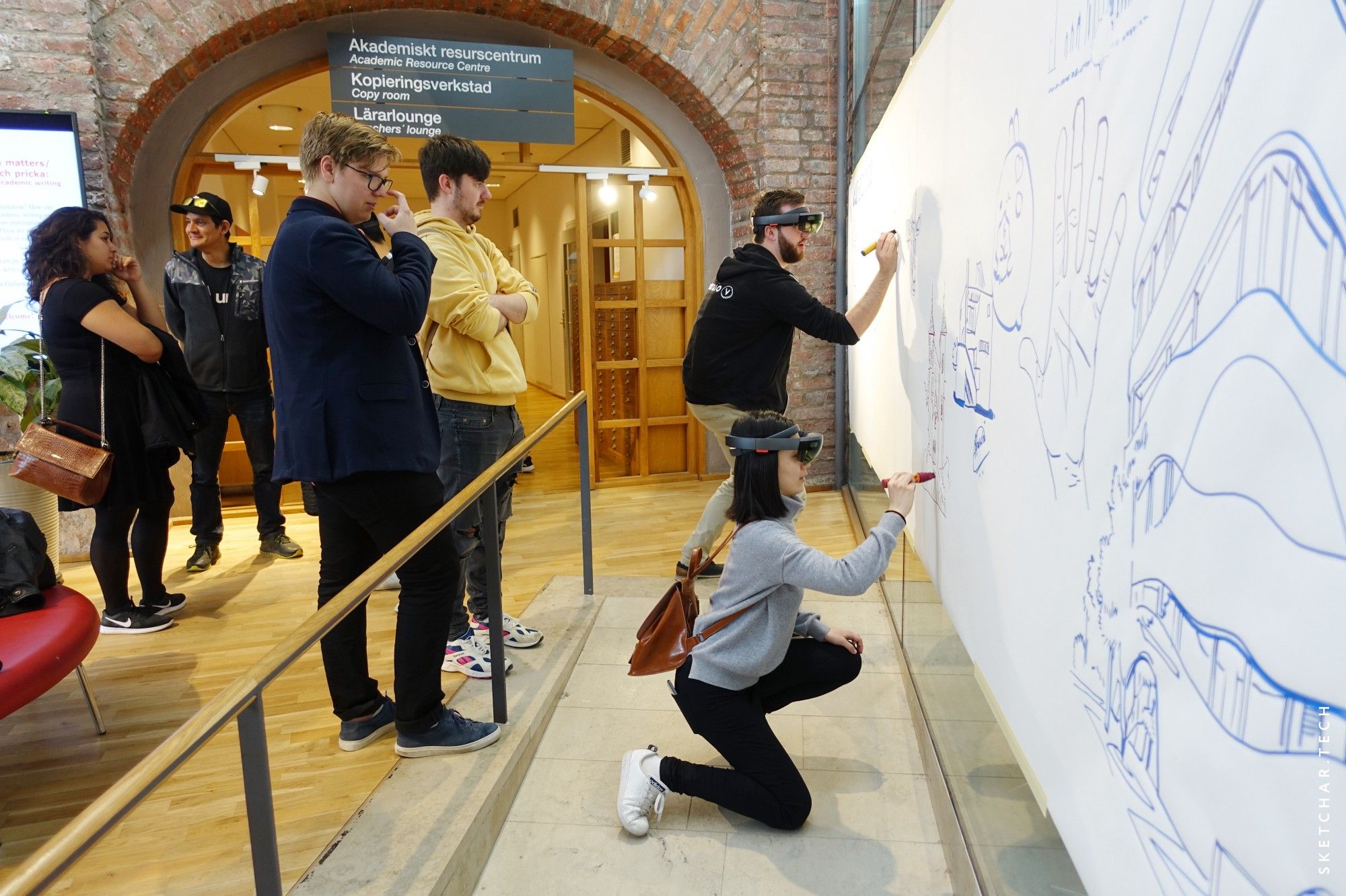 As a part of the event, we provided a unique live drawing experience using SketchAR on HoloLens at KTH Library and Tekniska Museet. All visitors created a collaborative artwork on a wall using mixed reality.