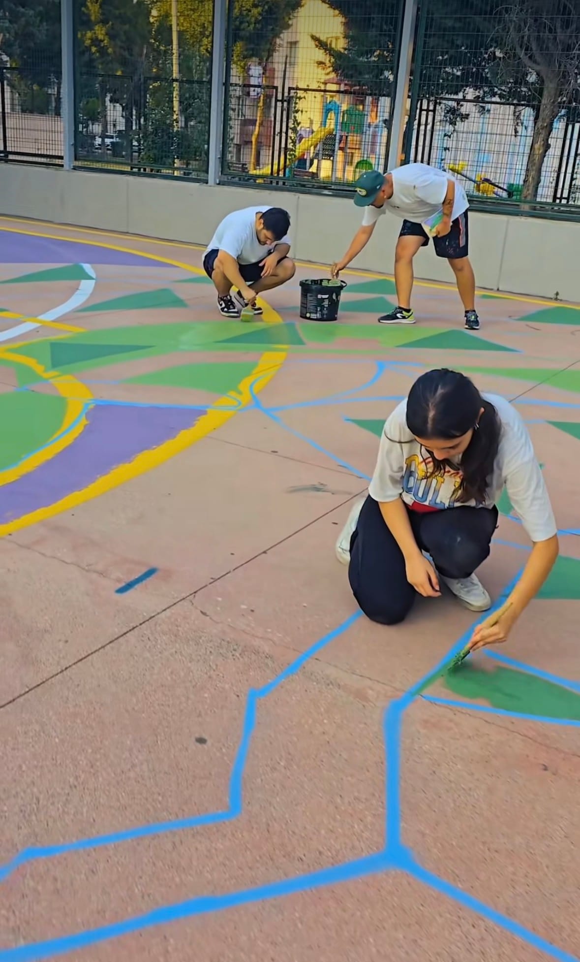 But not for Dukstill — one of Turkey’s early adopters of AR and VR tools for mural art. Known for transforming basketball courts into vivid, geometric playgrounds, Dukstill has pushed Sketchar and Meta Quest far beyond their original use cases, adapting the technology to the realities of large-scale ground painting.